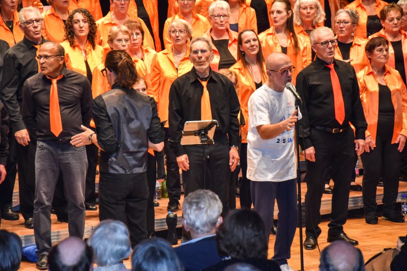Le concert s’est clôturé avec un joli clin d’oeil à Patrice, notre chef pendant plus de vingt ans. Il a rejoins la chorale pour animer le fameux « Vivre pour le meilleur« , parce ce que c’est tout ce que fait la chorale depuis 25 ans, elle continue de vivre, grâce aux public, aux choristes, à son chef, les membres bénévoles du bureau, les musiciens…. tous ça bien sûr : pour le meilleur !