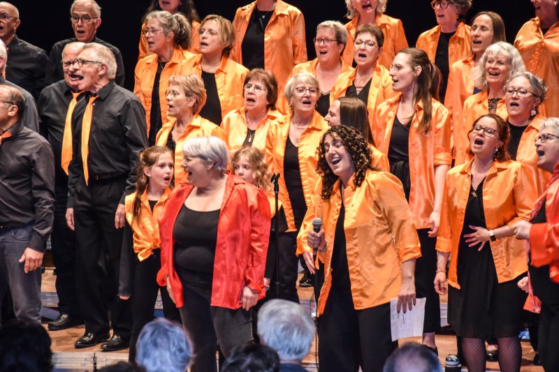 Balayant les années au fil de notre répertoire, le concert à commencé avec un moment nostalgie : l’ouverture par « anciens » choristes, ceux présents depuis les années 2001 à 2011. Ils ont ensuite été rejoint par deux vagues, les choristes arrivés entre 2011 et 2021 et les petits nouveaux qui nous ont rejoint durant les 5 dernières années. L’occasion de tous chanter « Ensemble » et de réunir cette grande famille !